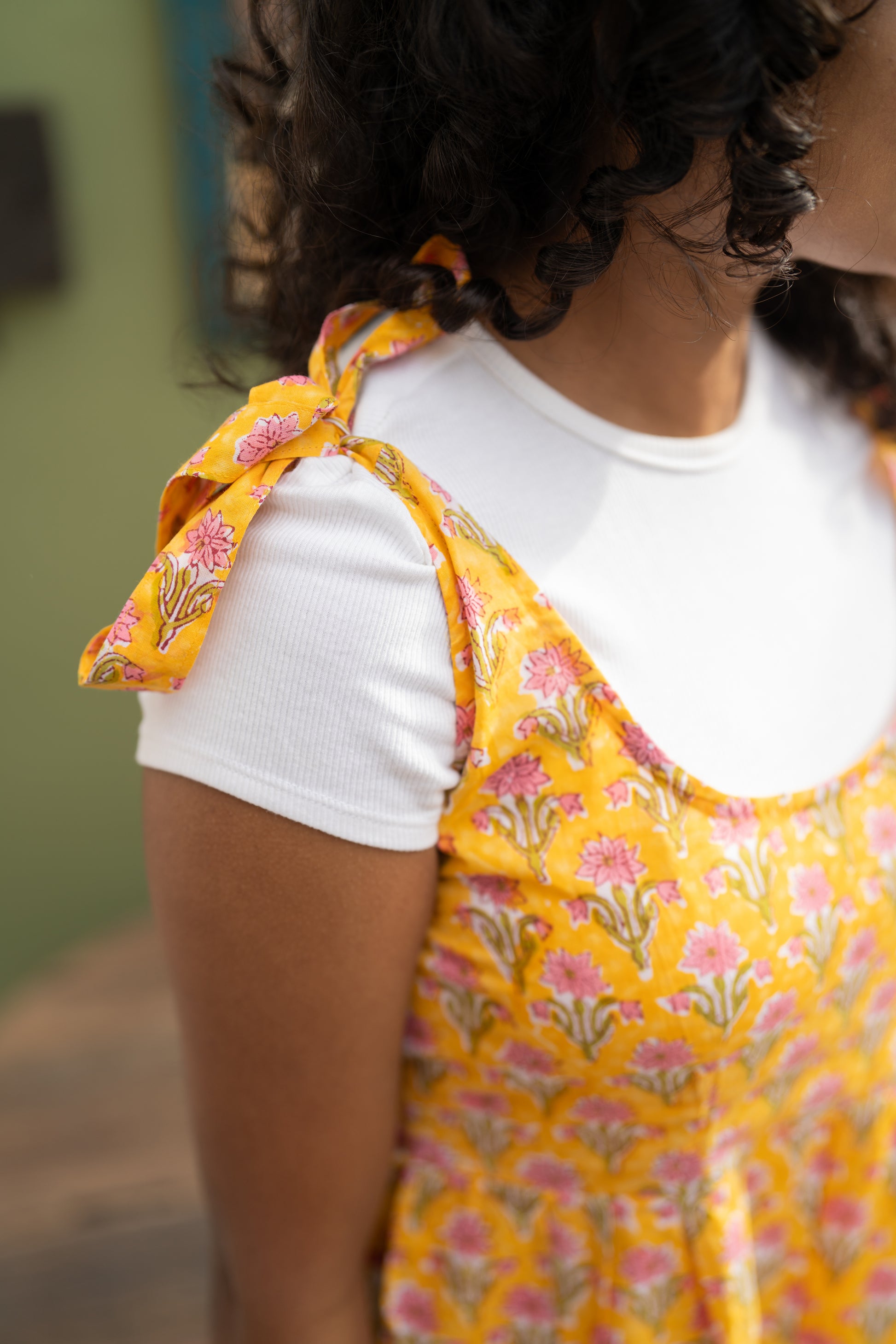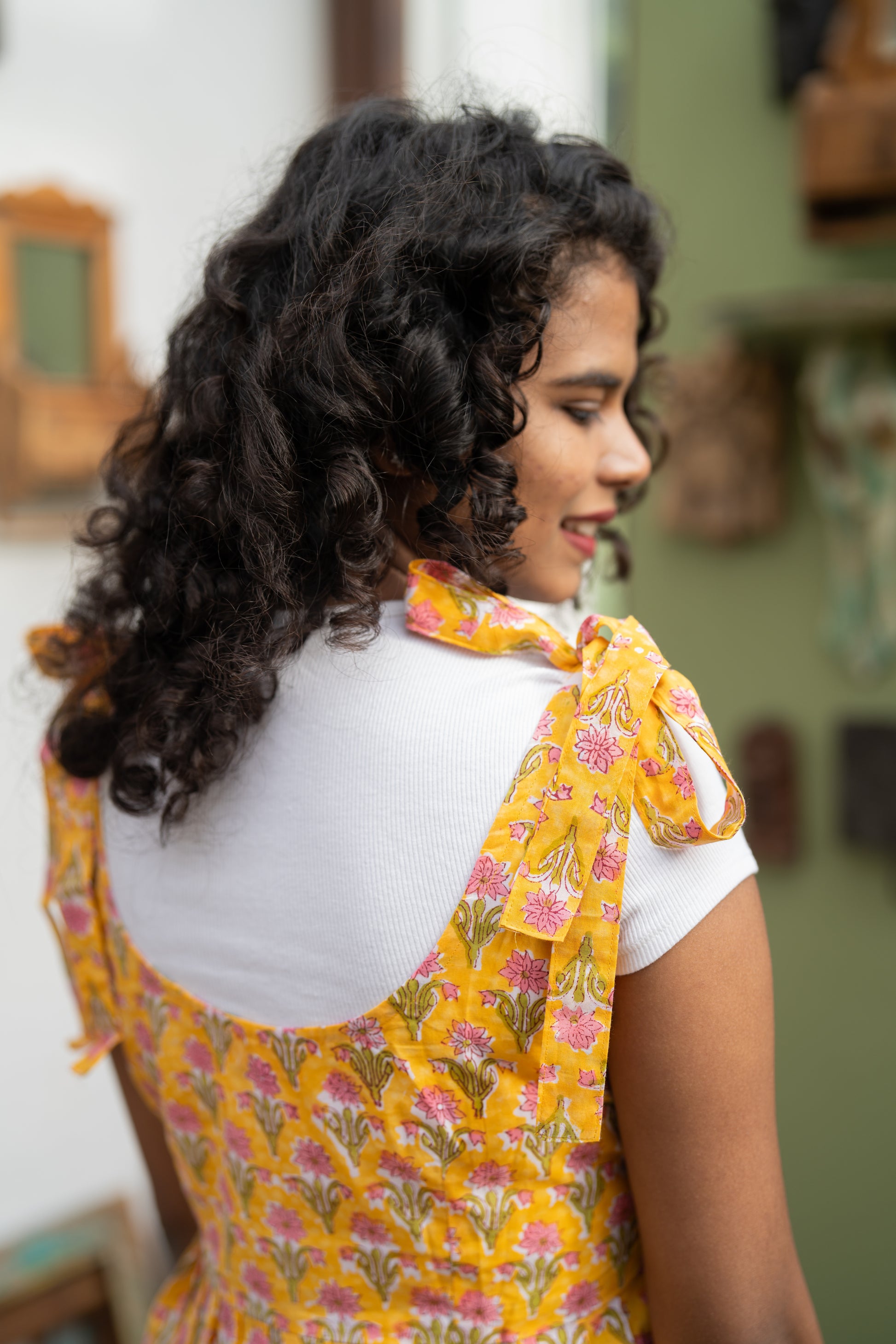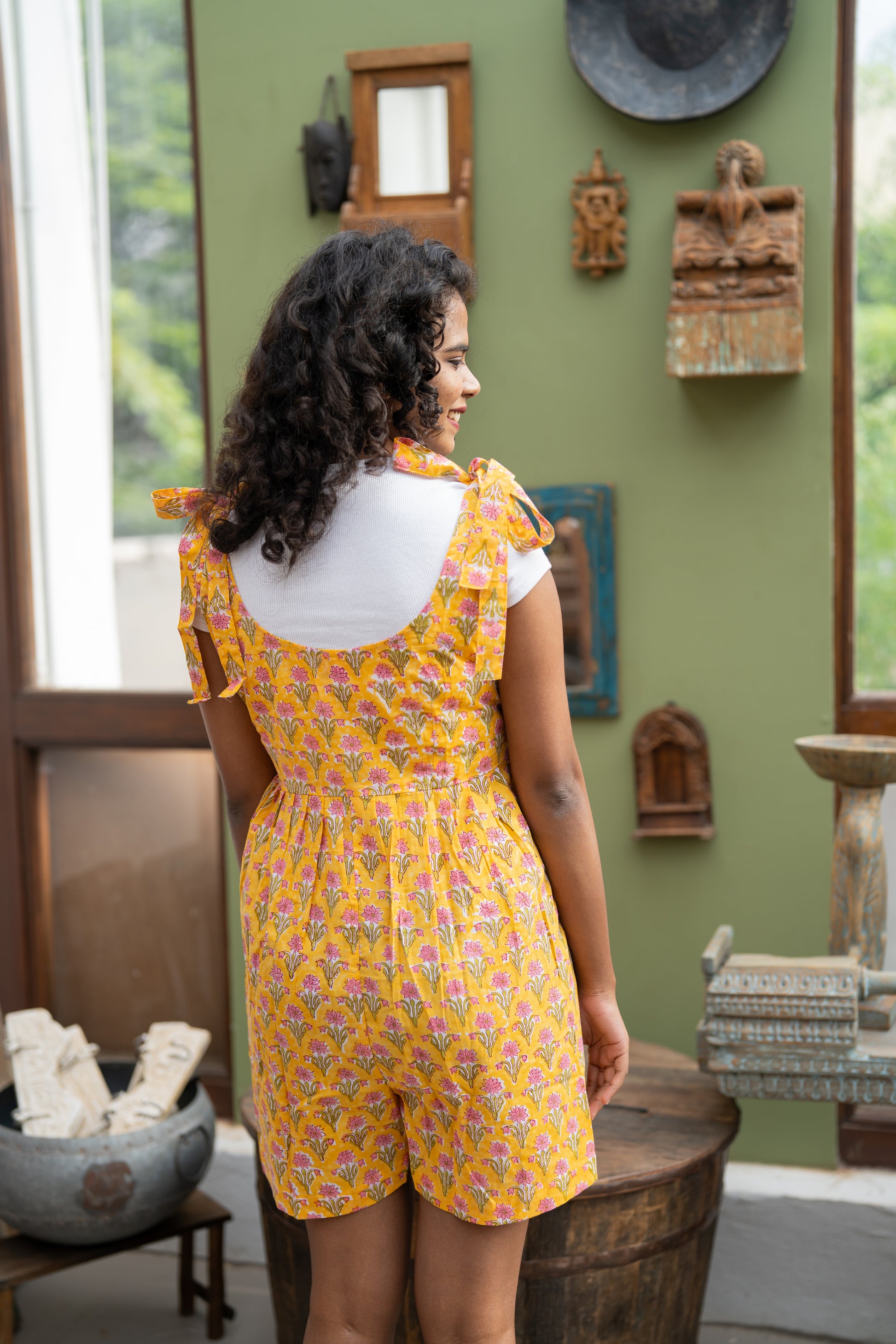 Meet Aamras, the juiciest pick from our Khatta Meetha collection! This yellow floral handblock printed short jumpsuit is as sweet and tangy as your favourite summer treat. With playful shoulder tie-ups and sneaky side zips for easy wear (no jumping required!), Aamras is all about looking cute while keeping it cool. It’s comfy, it’s quirky, and it’s basically mango season in outfit form!