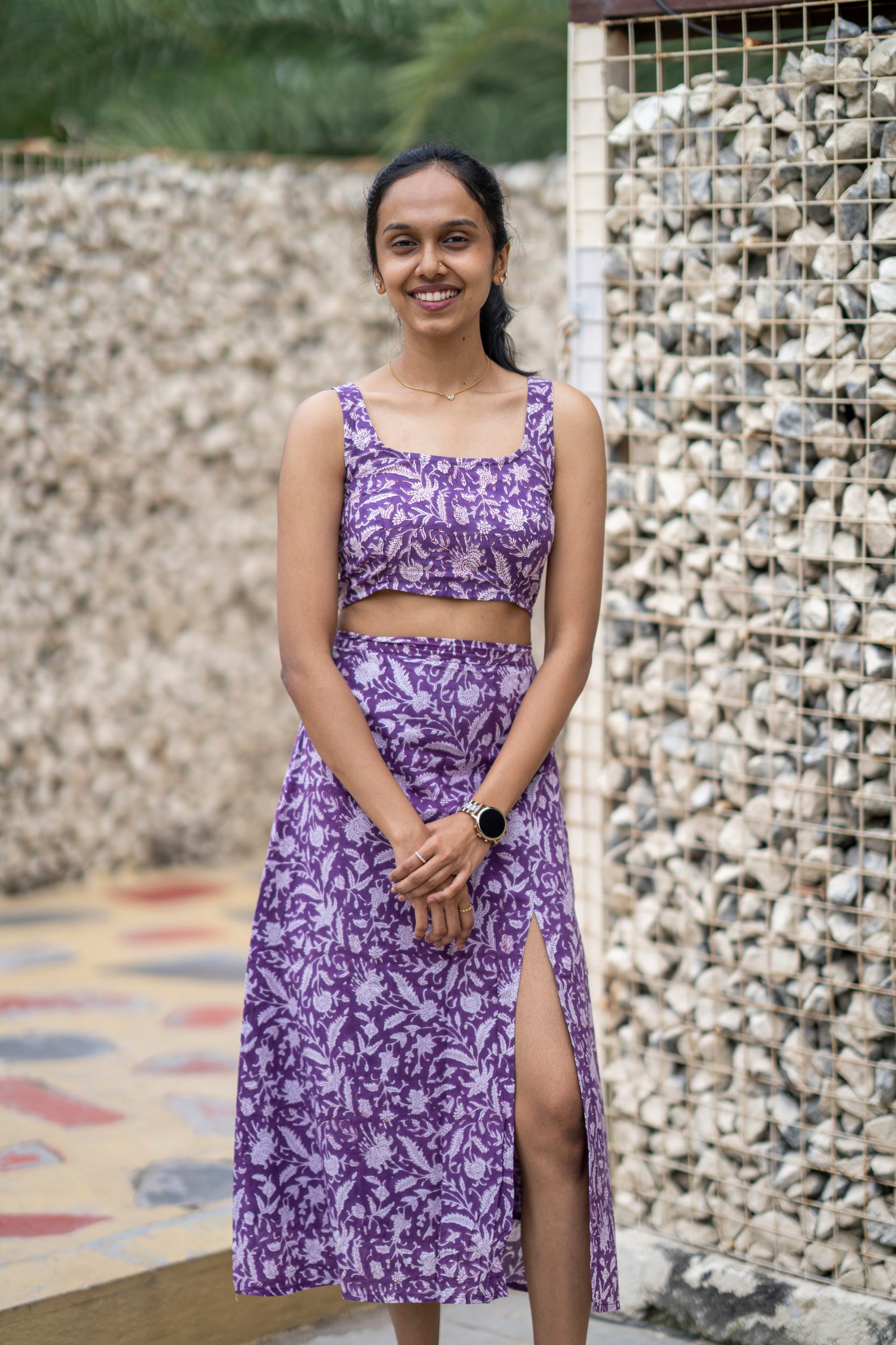 After Hours is the purple floral handblock co-ord that makes brunch feel like an extension of last night’s fun — but cuter.