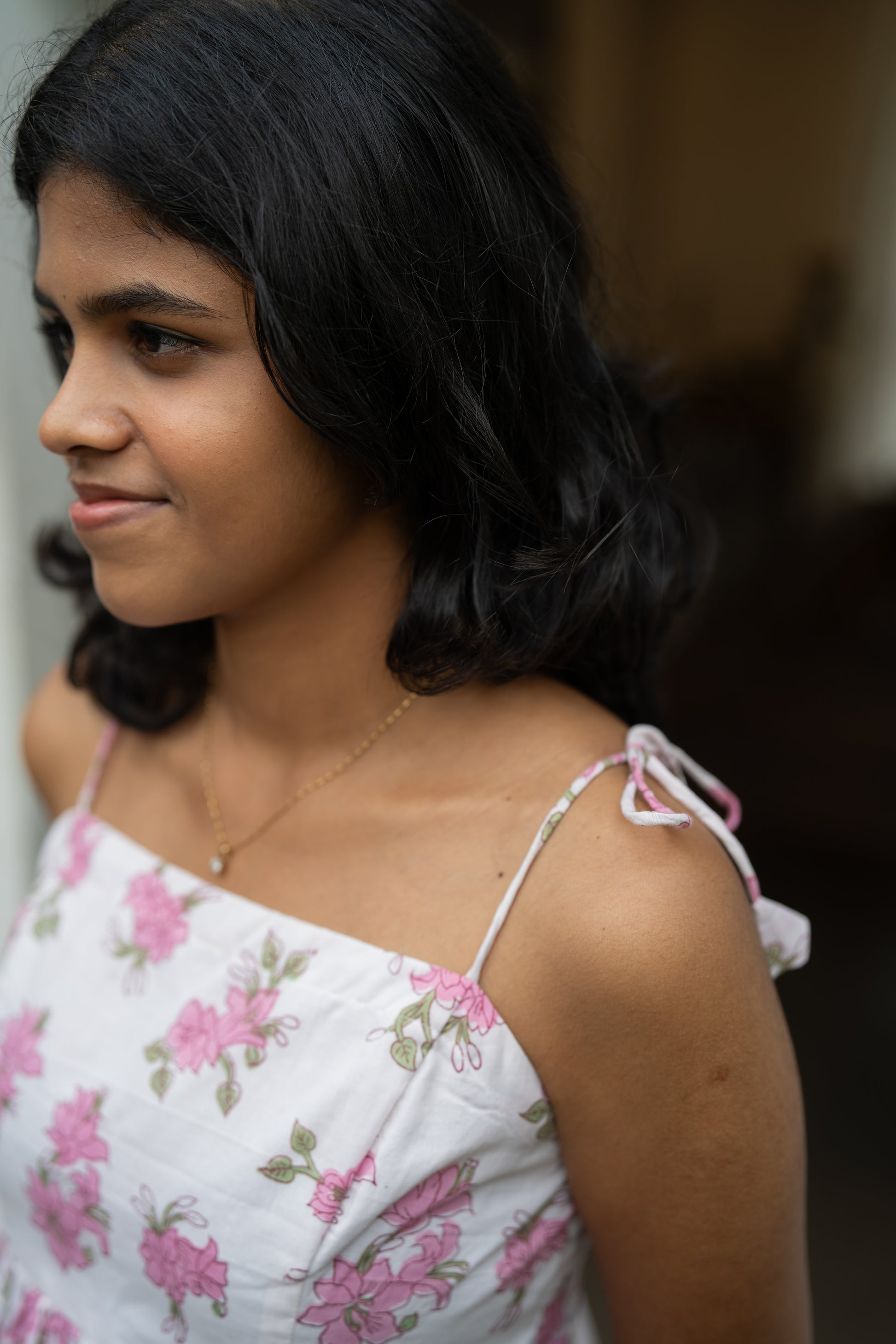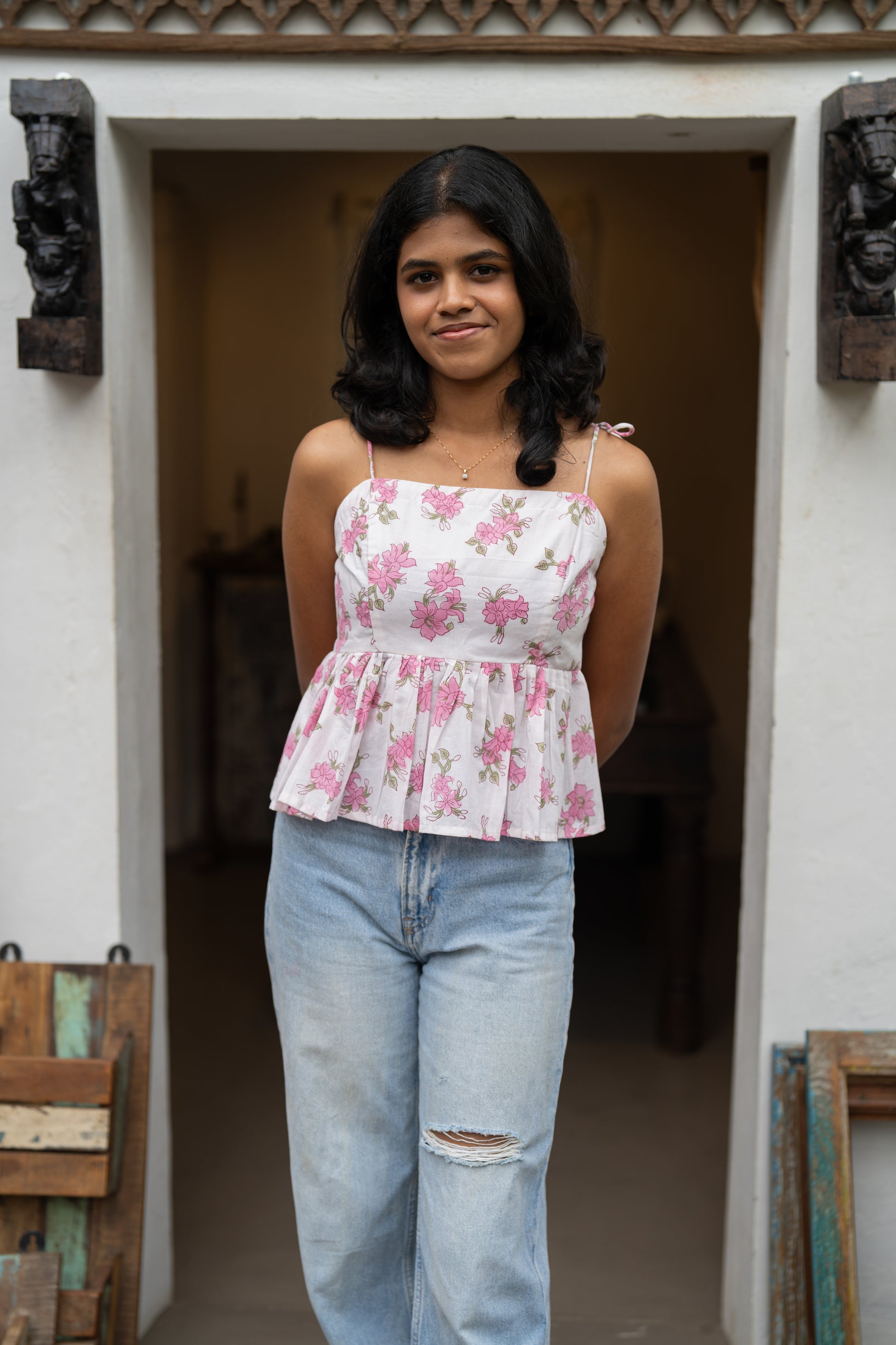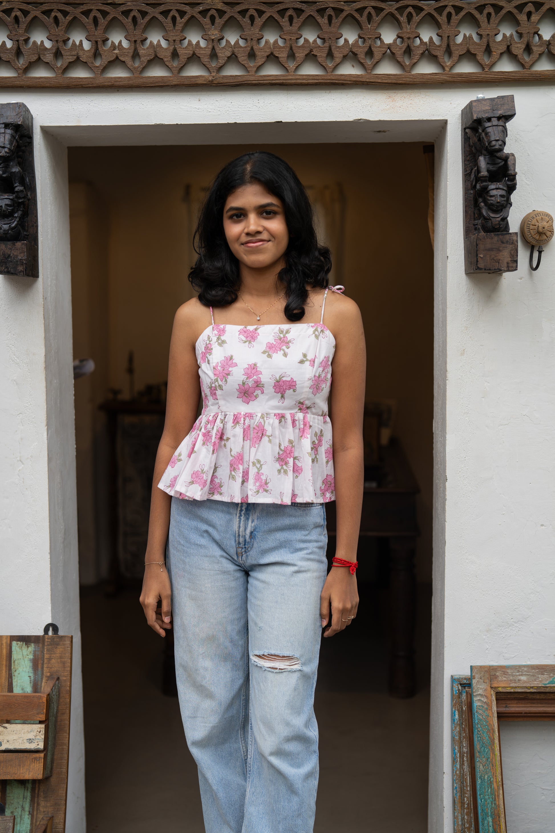 Just like that first sip of chilled chhas on a sunny day, this white floral handblock printed peplum top is pure refreshment! With flirty tie-up shoulder details and a breezy silhouette, Chhas from our Khatta Meetha collection is the perfect blend of cute and cool. It’s got that mellow sweetness with a dash of spice—basically, summer in a top!