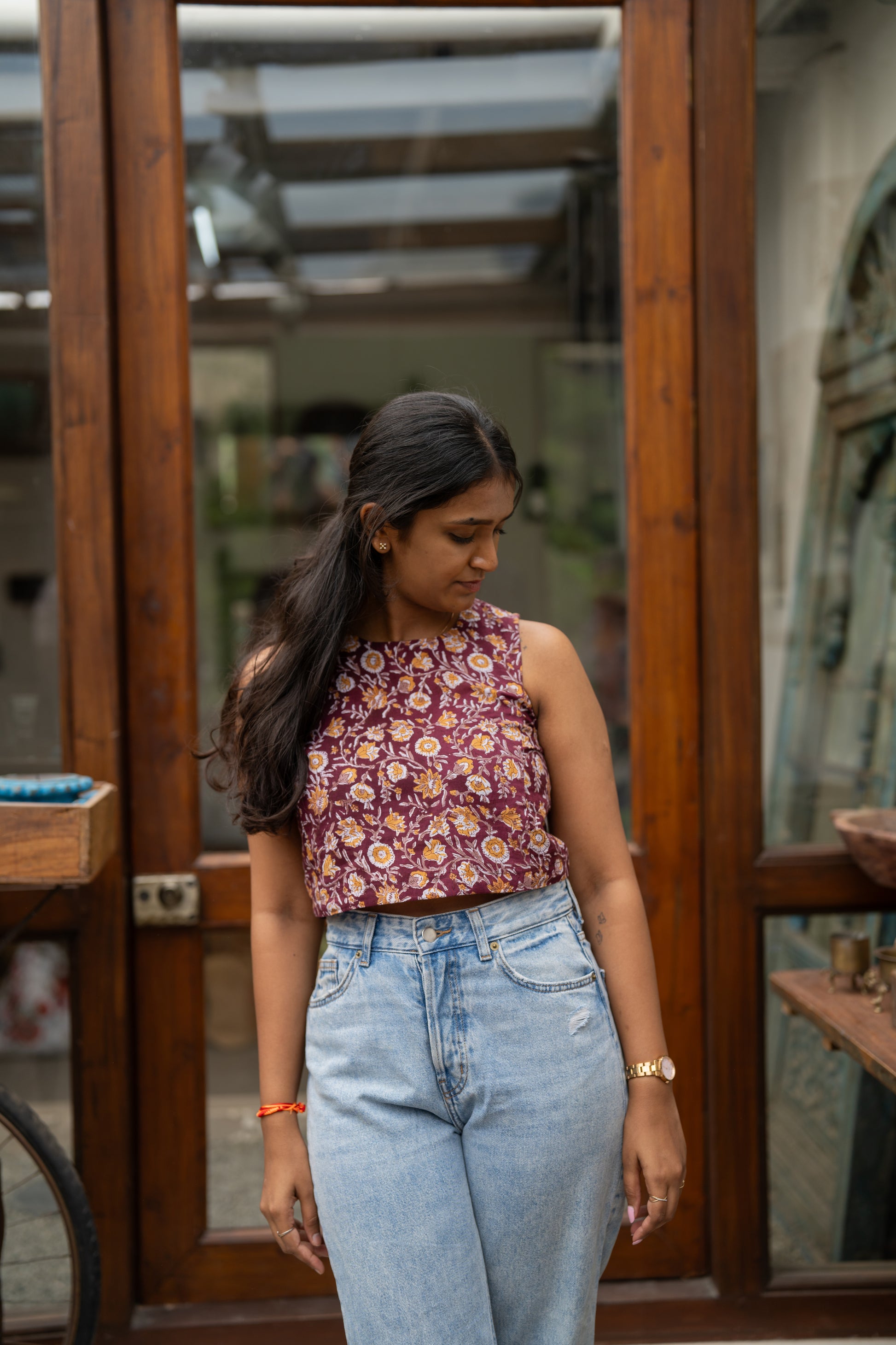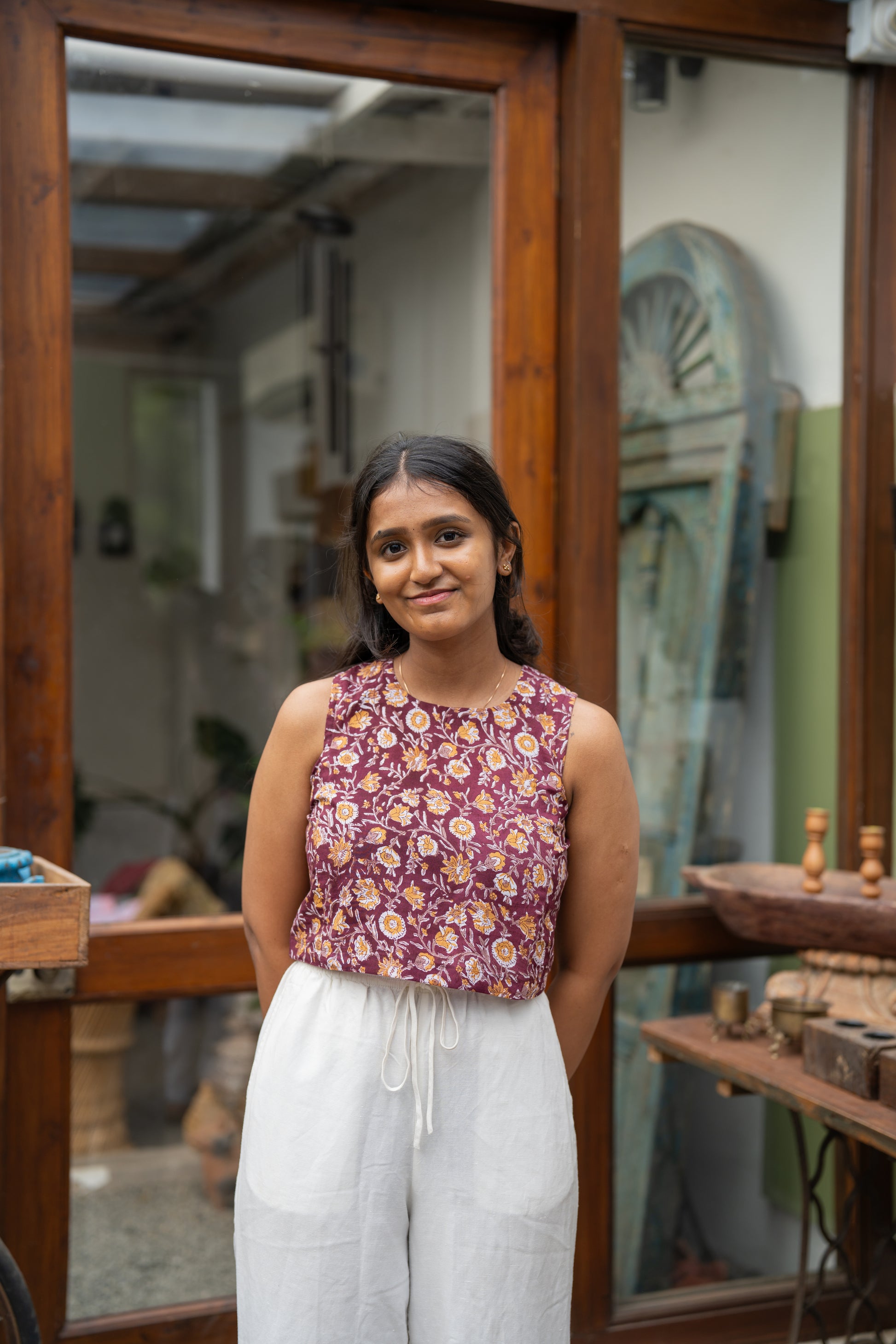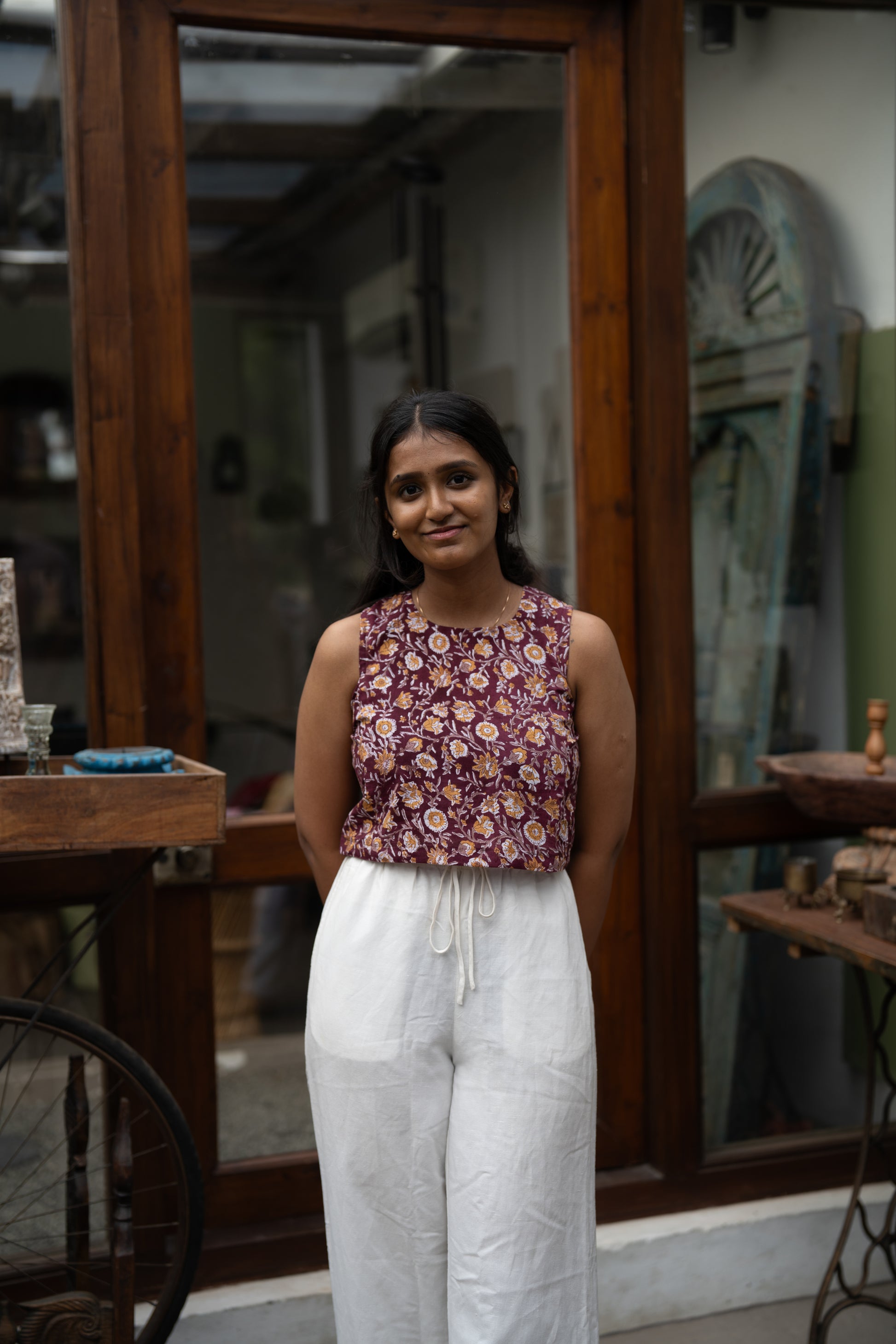 This red floral handblock printed sleeveless top from our Khatta Meetha collection is your go-to for when you want to look sweet but still keep it thoda spicy. With its breezy fit and timeless charm, Chupa Chups is equal parts playful and practical — perfect for everything from Sunday strolls to spontaneous snack dates. It's that top you’ll reach for when you want to feel like sunshine dipped in imli sauce.