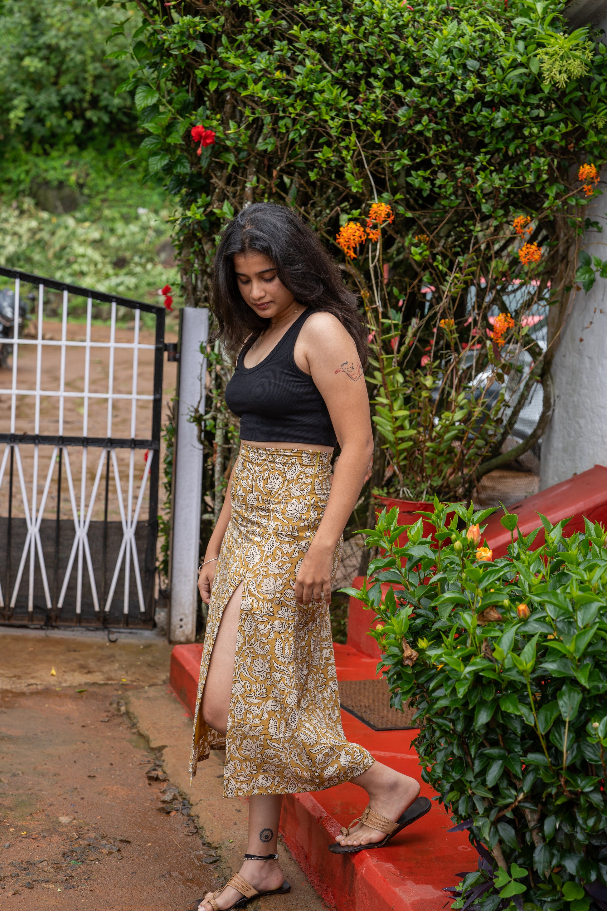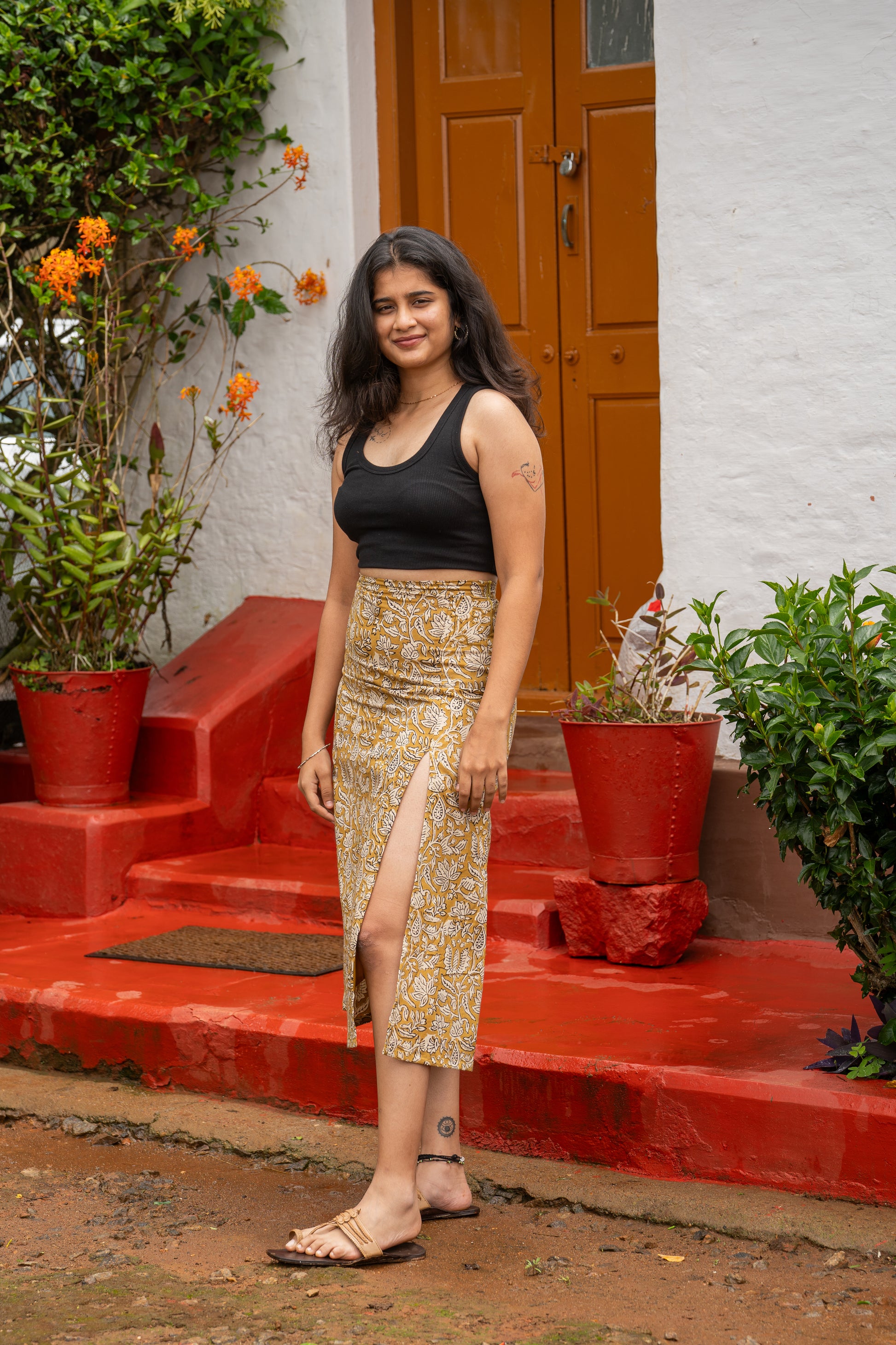 Sip on a cup of style with our Cutting Chai Slit Skirt, the fabric is as soothing as a sip of your favourite chai. The print is like wearing a sip of comfort, reminding you of the simple pleasures that come with a warm cup of chai on a rainy day. You can pair it up with a black top or go up a notch and go matchy matchy with our Cutting Chai Crop Top.