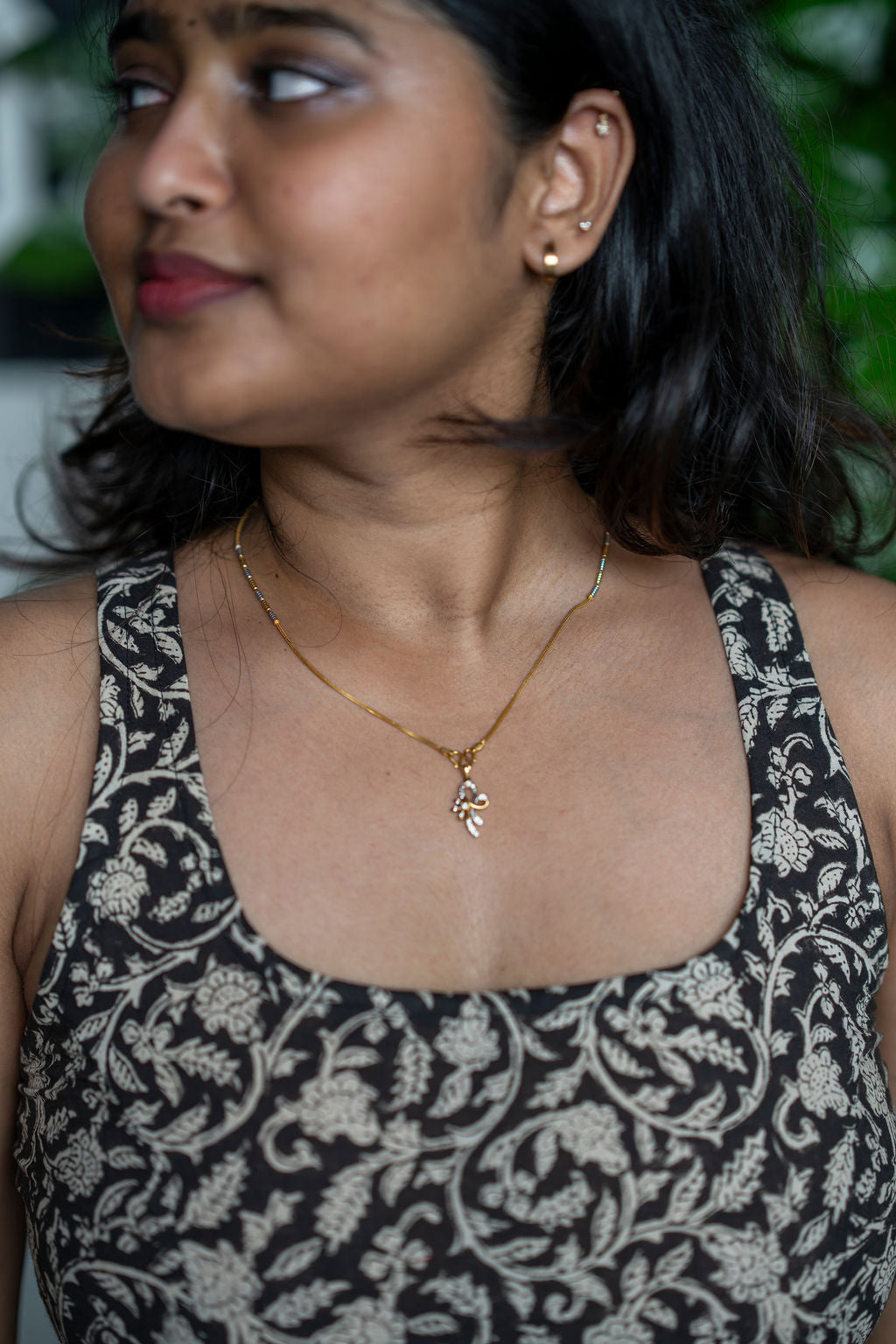 Disco is the black floral handblock crop top and slit skirt set that walks in like its own spotlight.