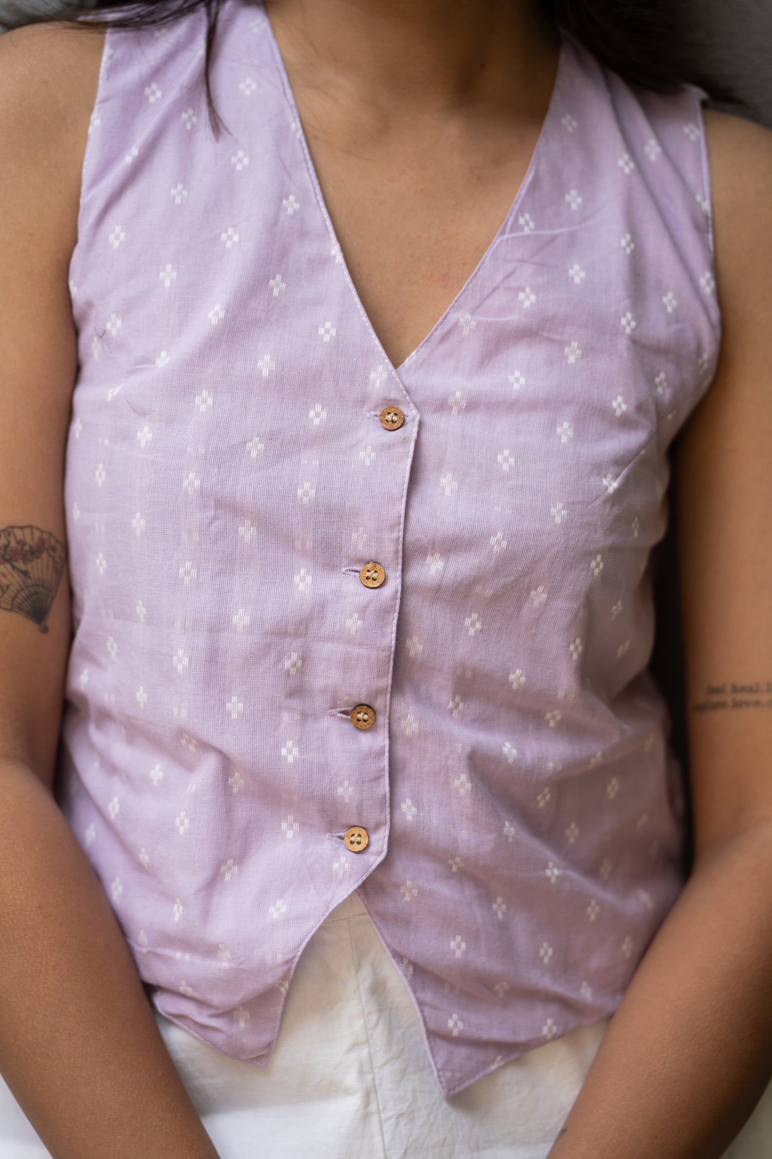 Introducing "Frisbee," a lively light purple vest that's as fun and breezy as a spontaneous game on the beach. This versatile piece brings a splash of color and a playful vibe to your wardrobe. Pair it with a white pant or high waisted jeans for a laid-back, beach ready look. ๐๏ธ๐