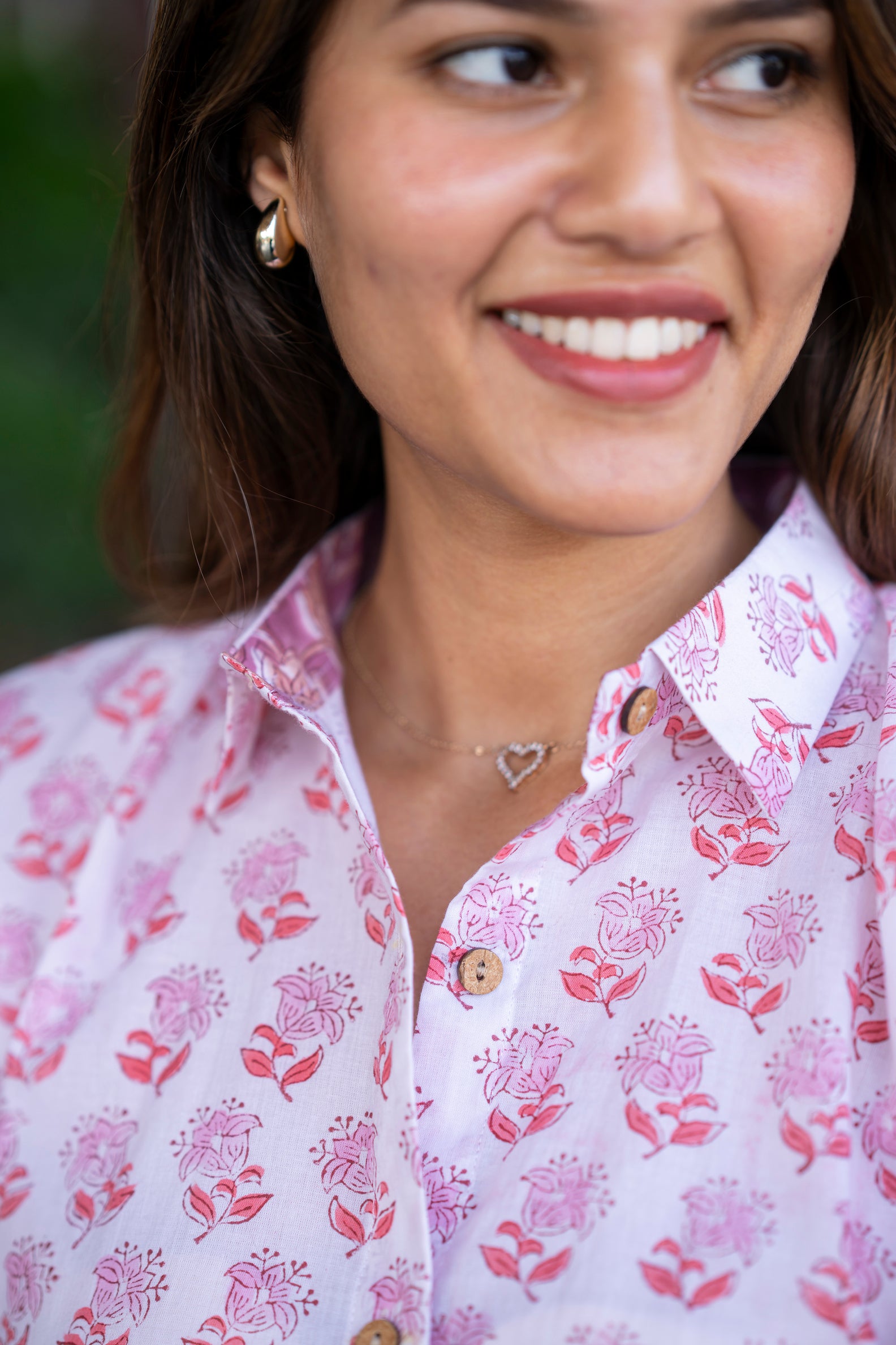 Hangover is the white floral handblock oversized shirt that makes even your laziest days look cute and intentional.
