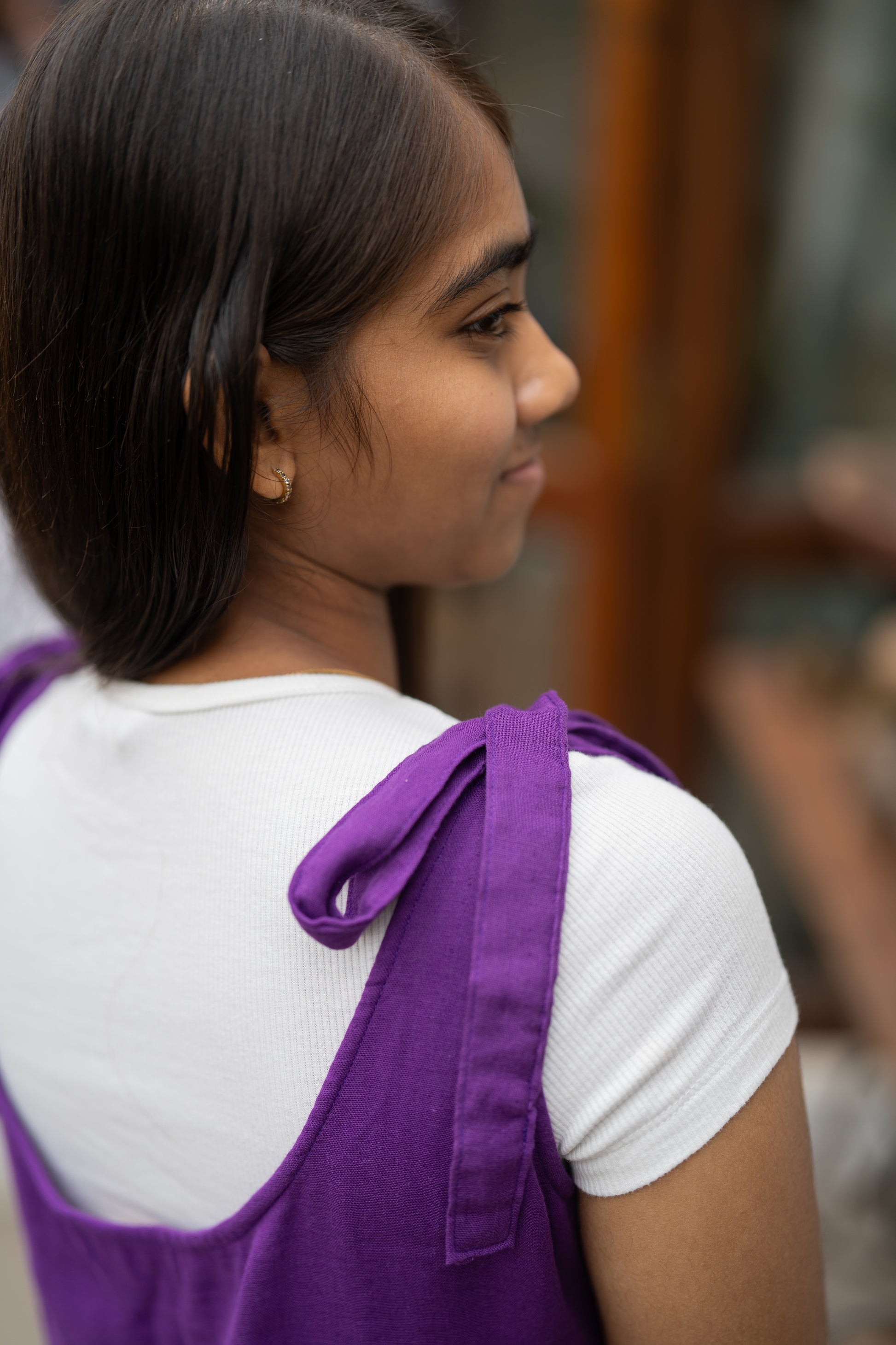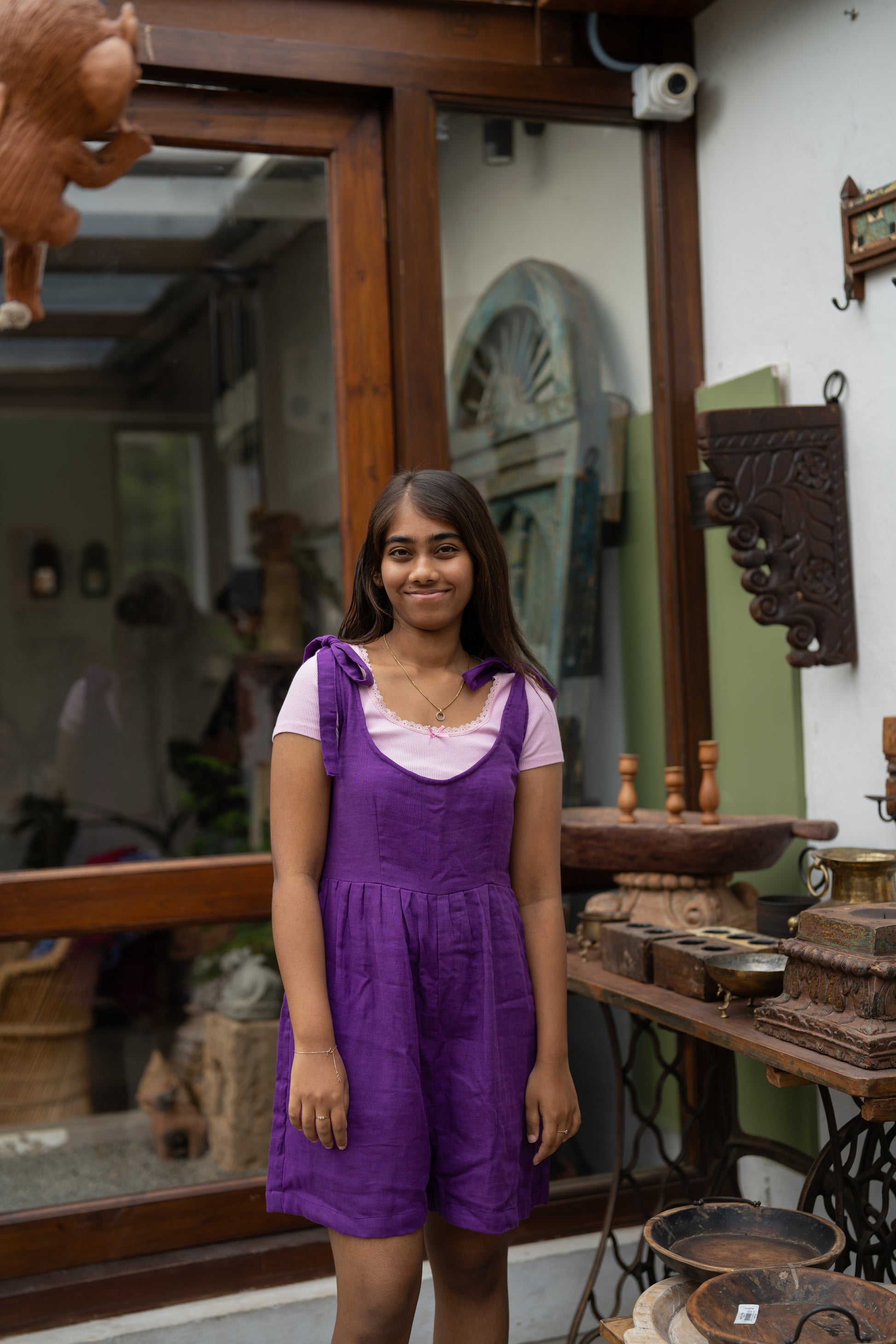 Introducing Kala Jamun, the ultimate purple power play from our Khatta Meetha collection! Made in soft-as-a-cloud double gauze muslin, this short jumpsuit is your go-to for those chatpata days. With tangy shoulder tie-ups and side zips that make slipping in a breeze, Kalakhatta serves up cool comfort with a bold twist—just like your favourite gola!