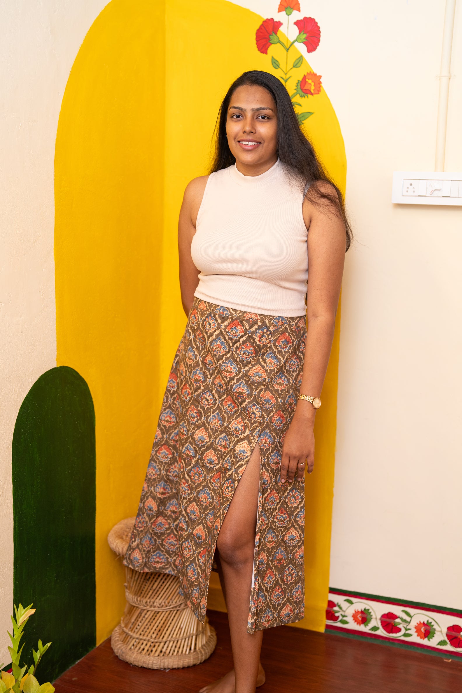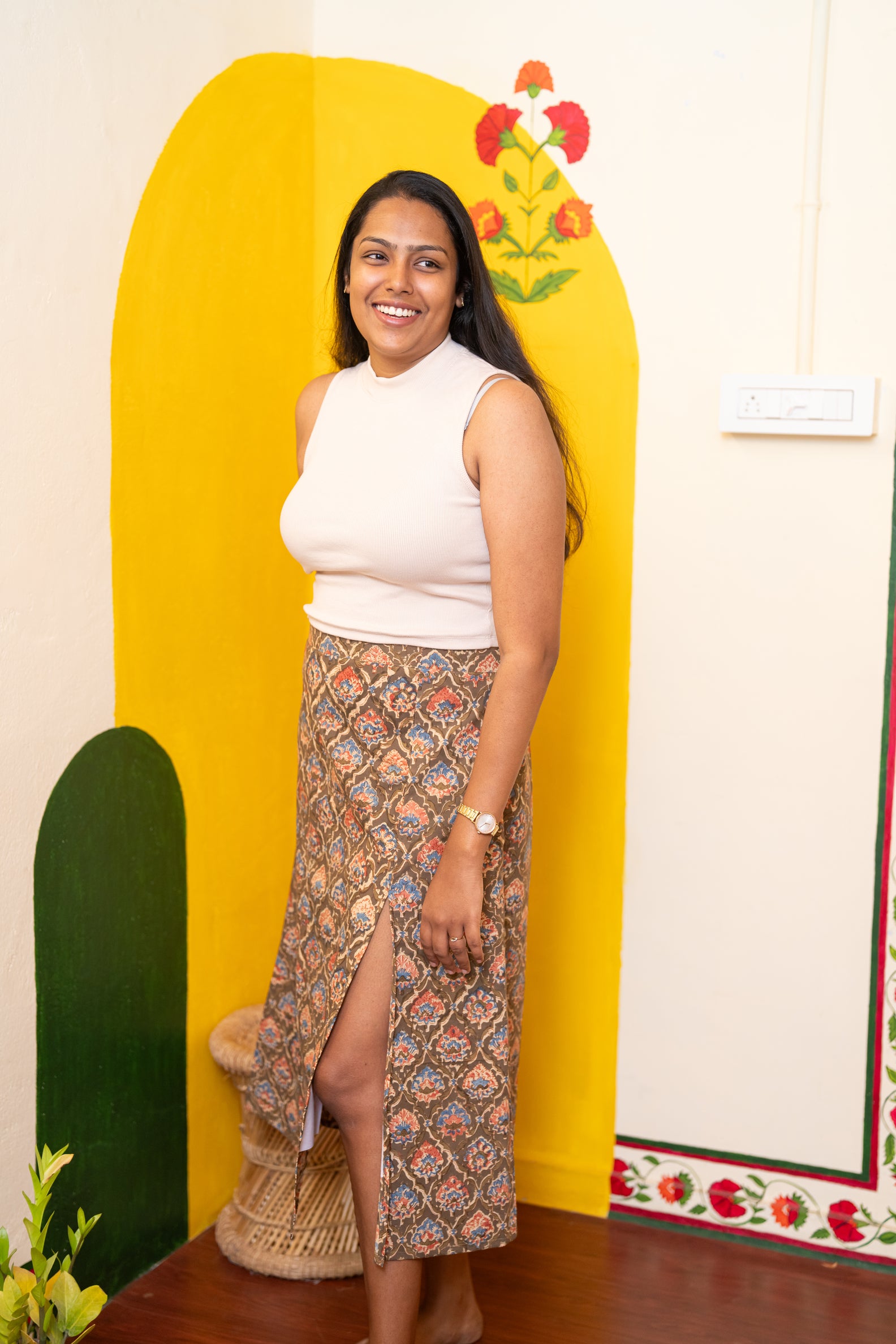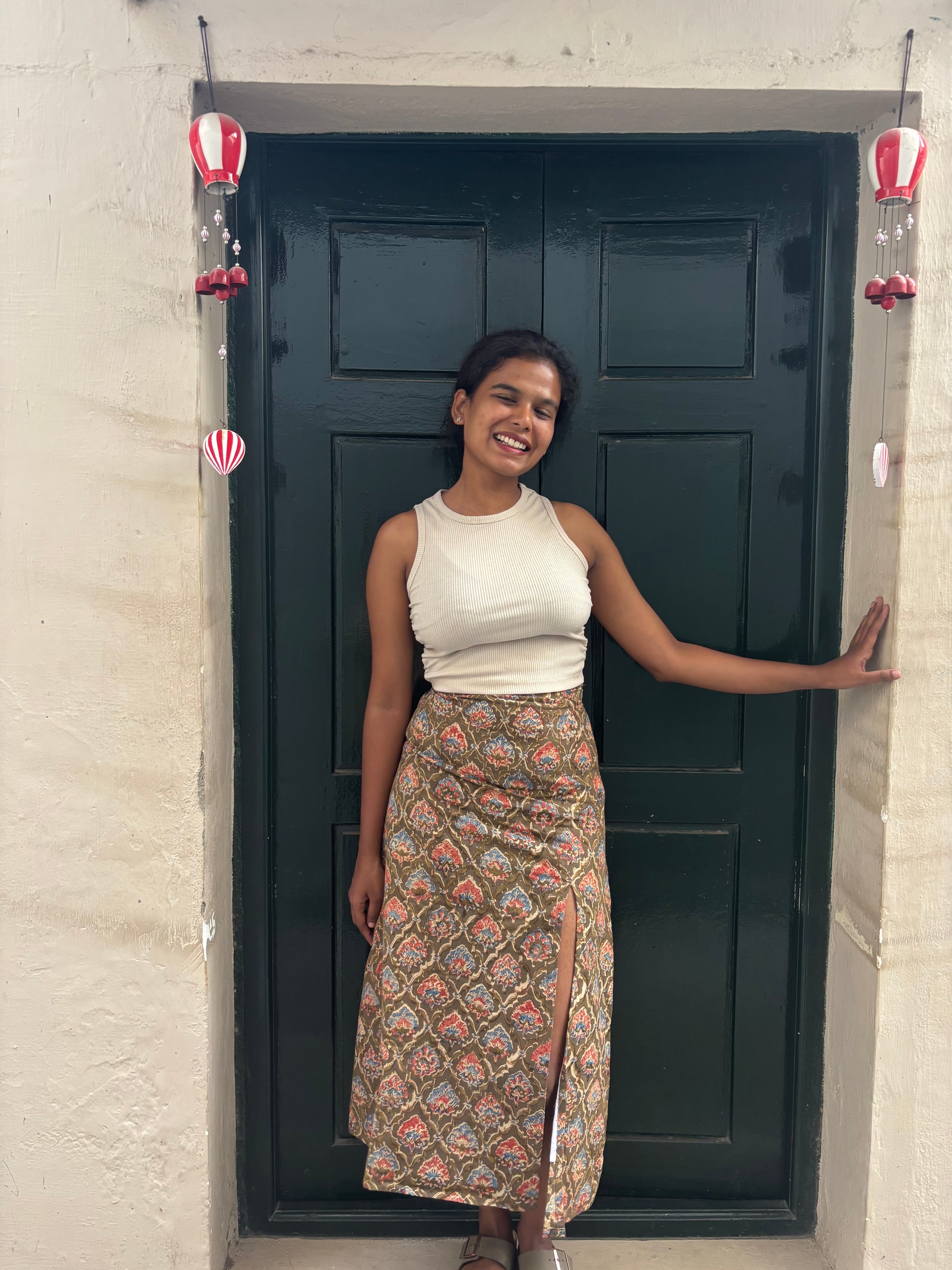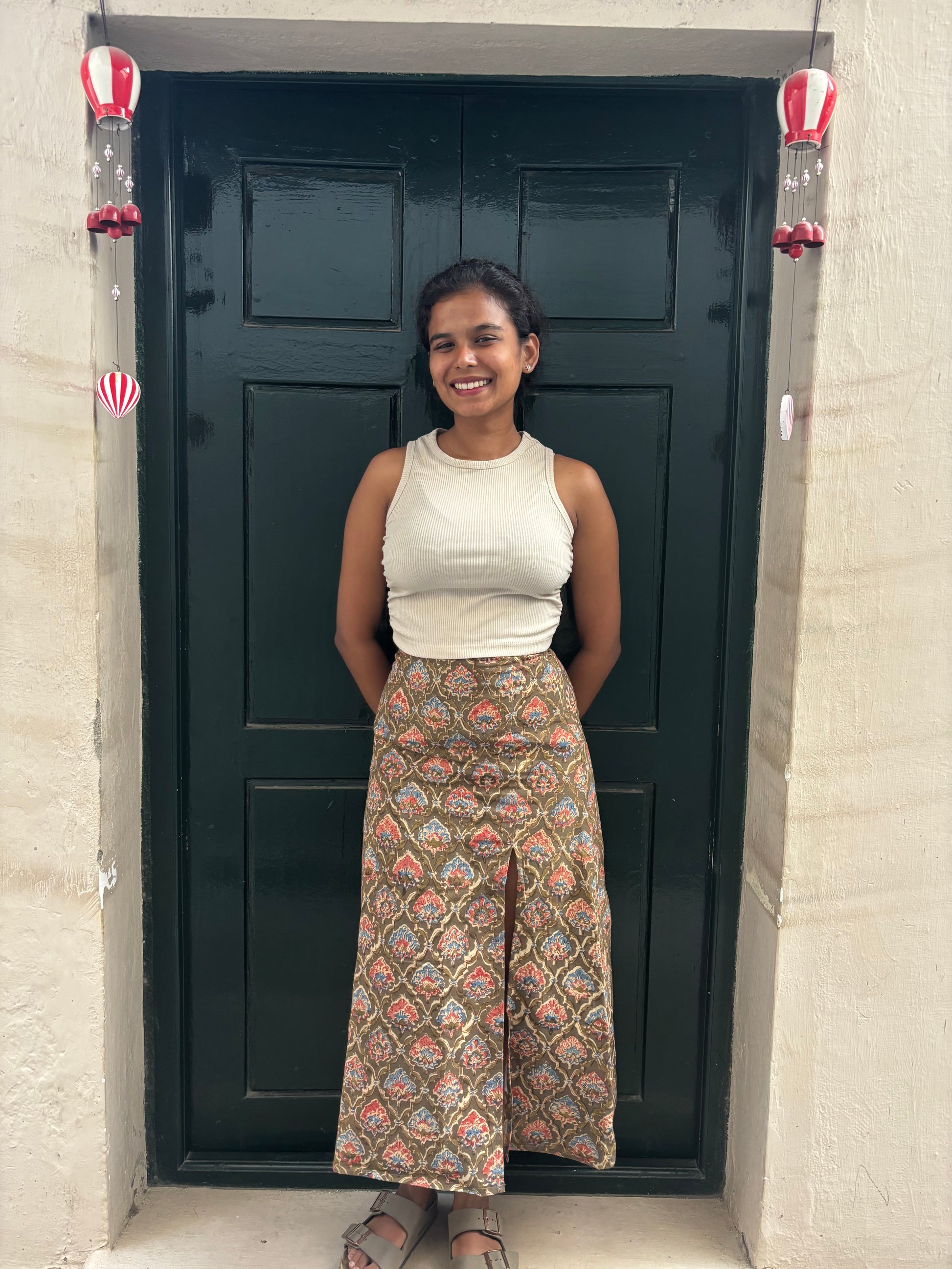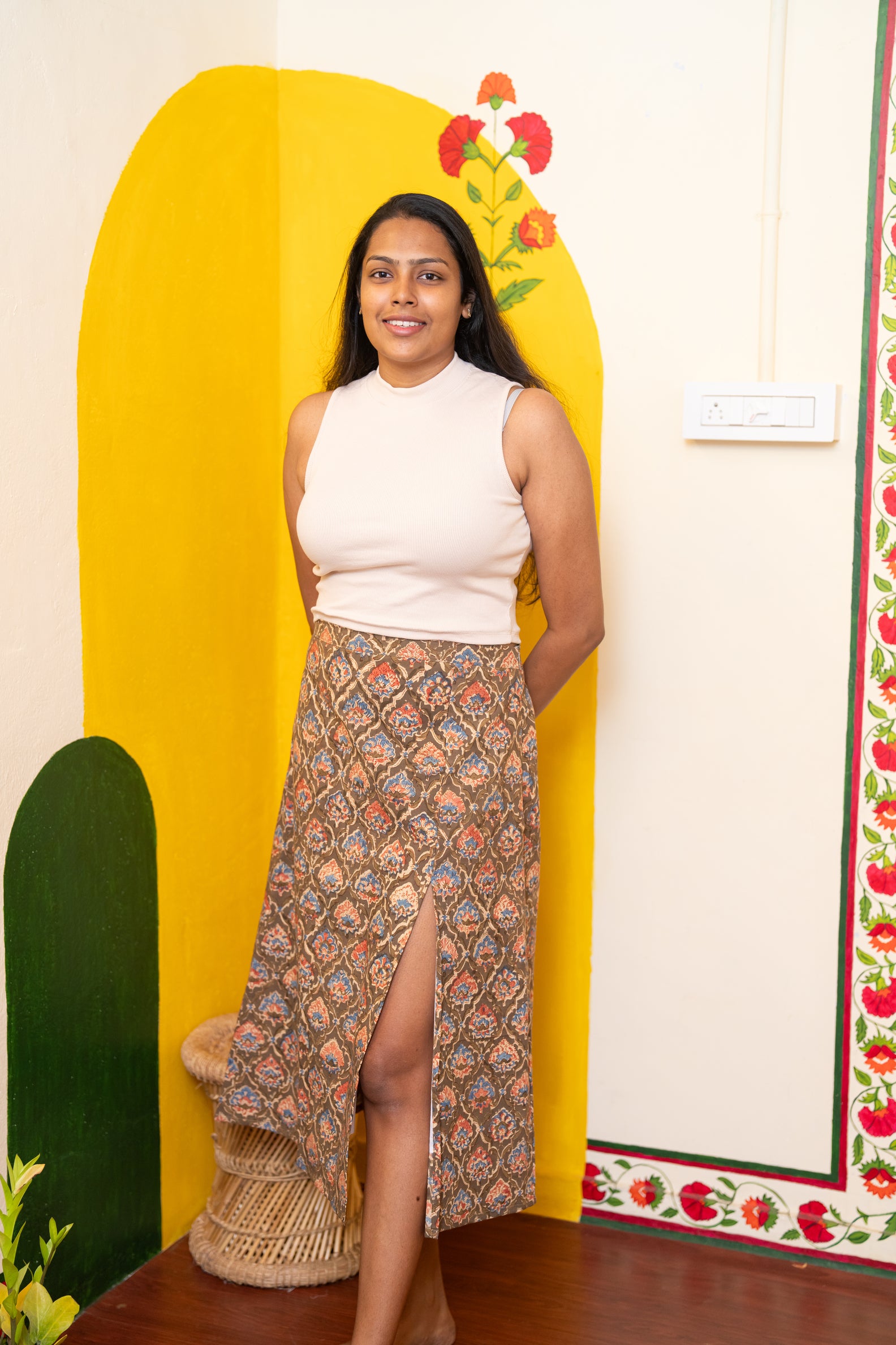 Meet Lakshu—an earthy-toned slit skirt that’s as effortlessly stylish and full of grace as the bestie it’s named after! 🌿✨ Inspired by Lakshu, our founder’s incredible bestie and new mom, this skirt is the perfect balance of comfort and chic. Whether you're chasing after little ones or enjoying some well-deserved me-time, Lakshu is here to keep you looking fabulous and feeling free!