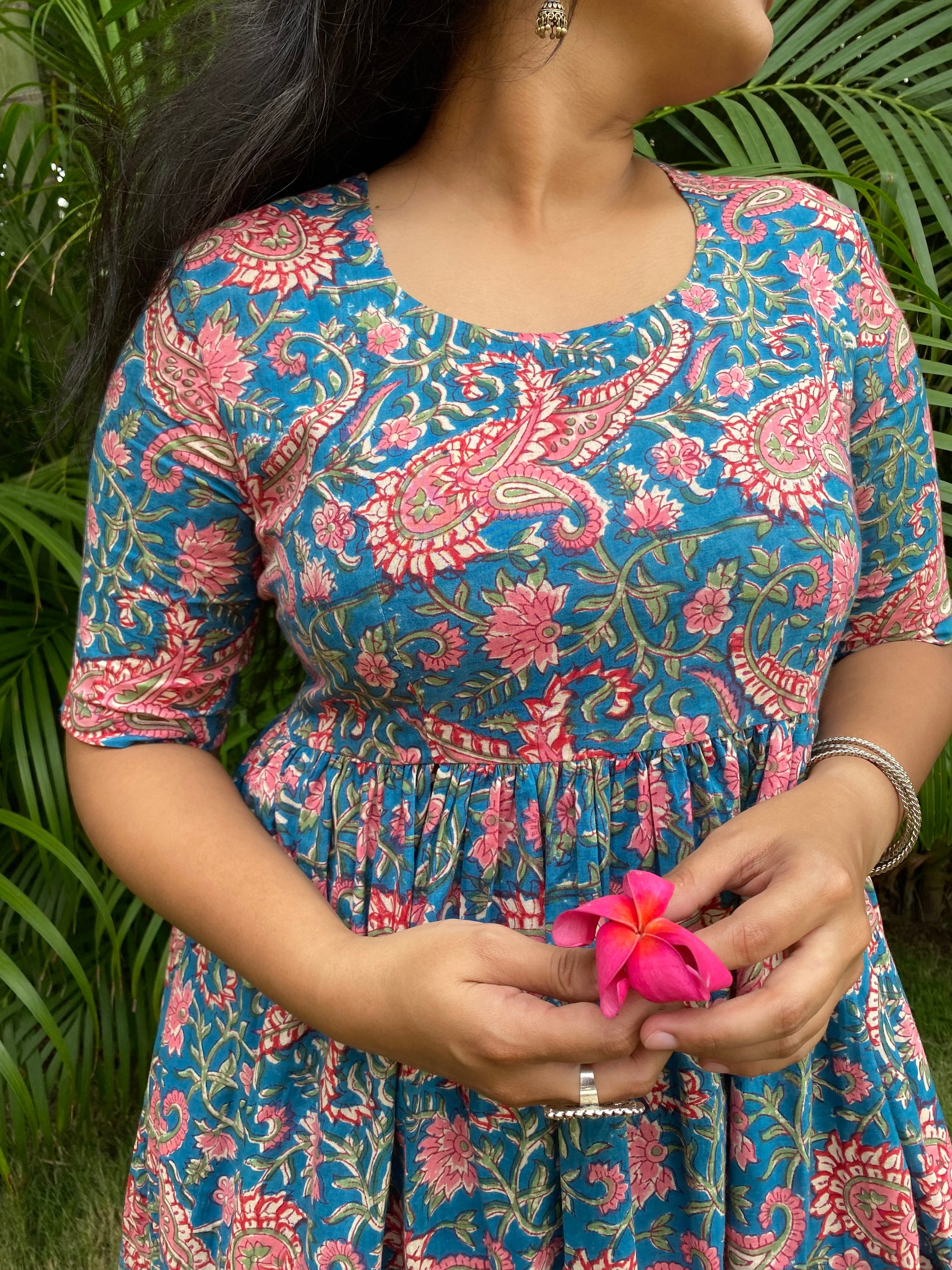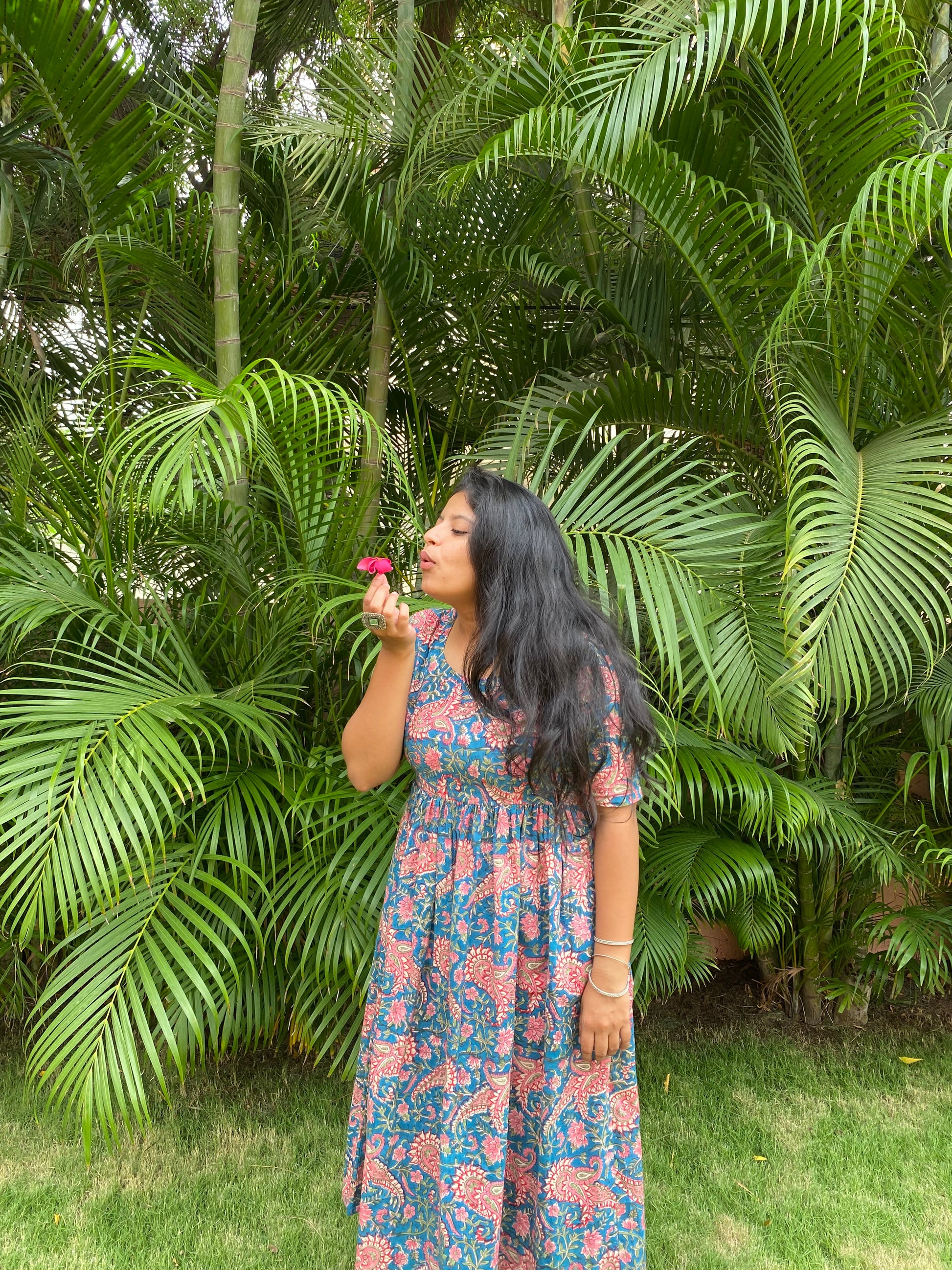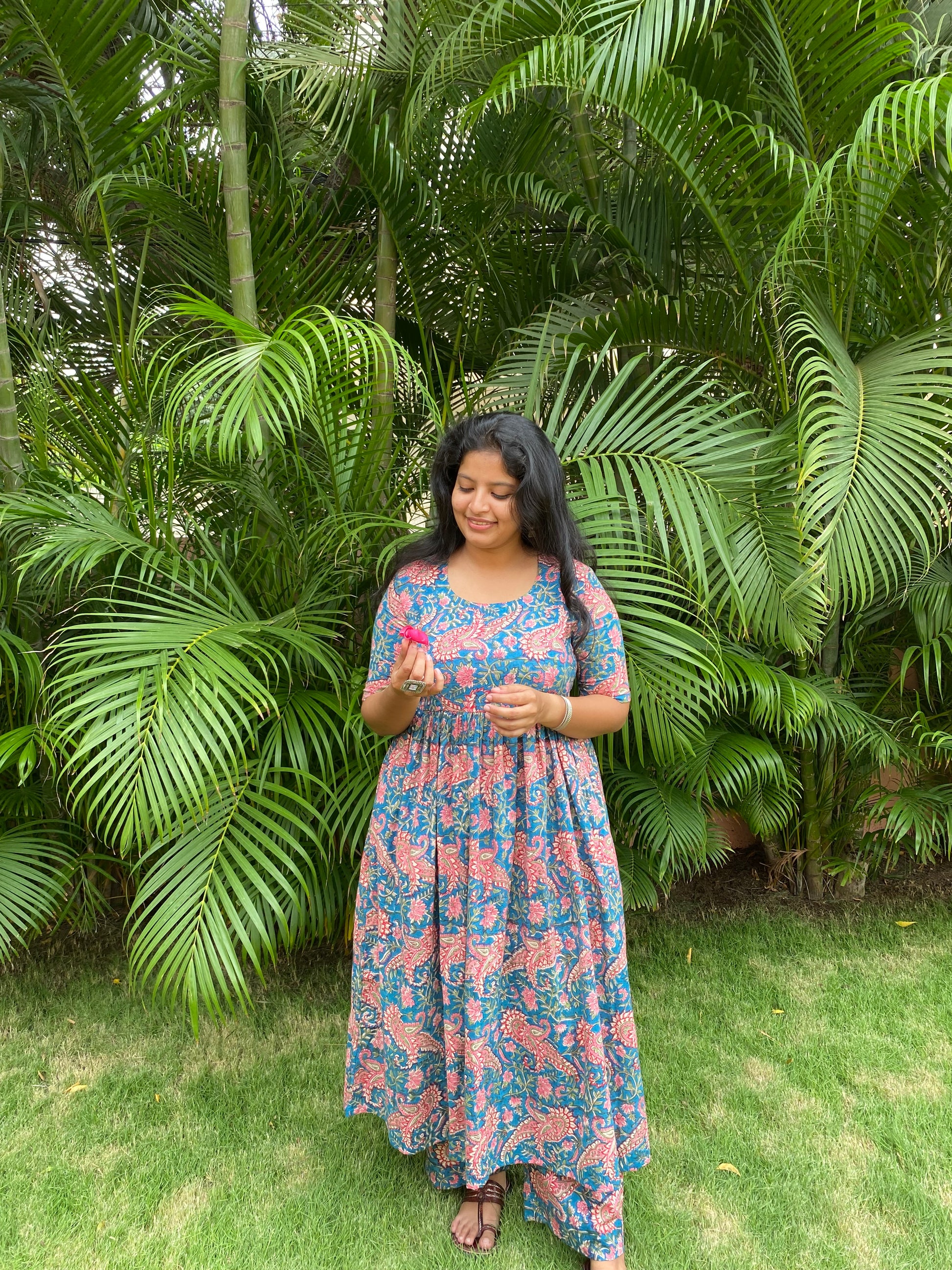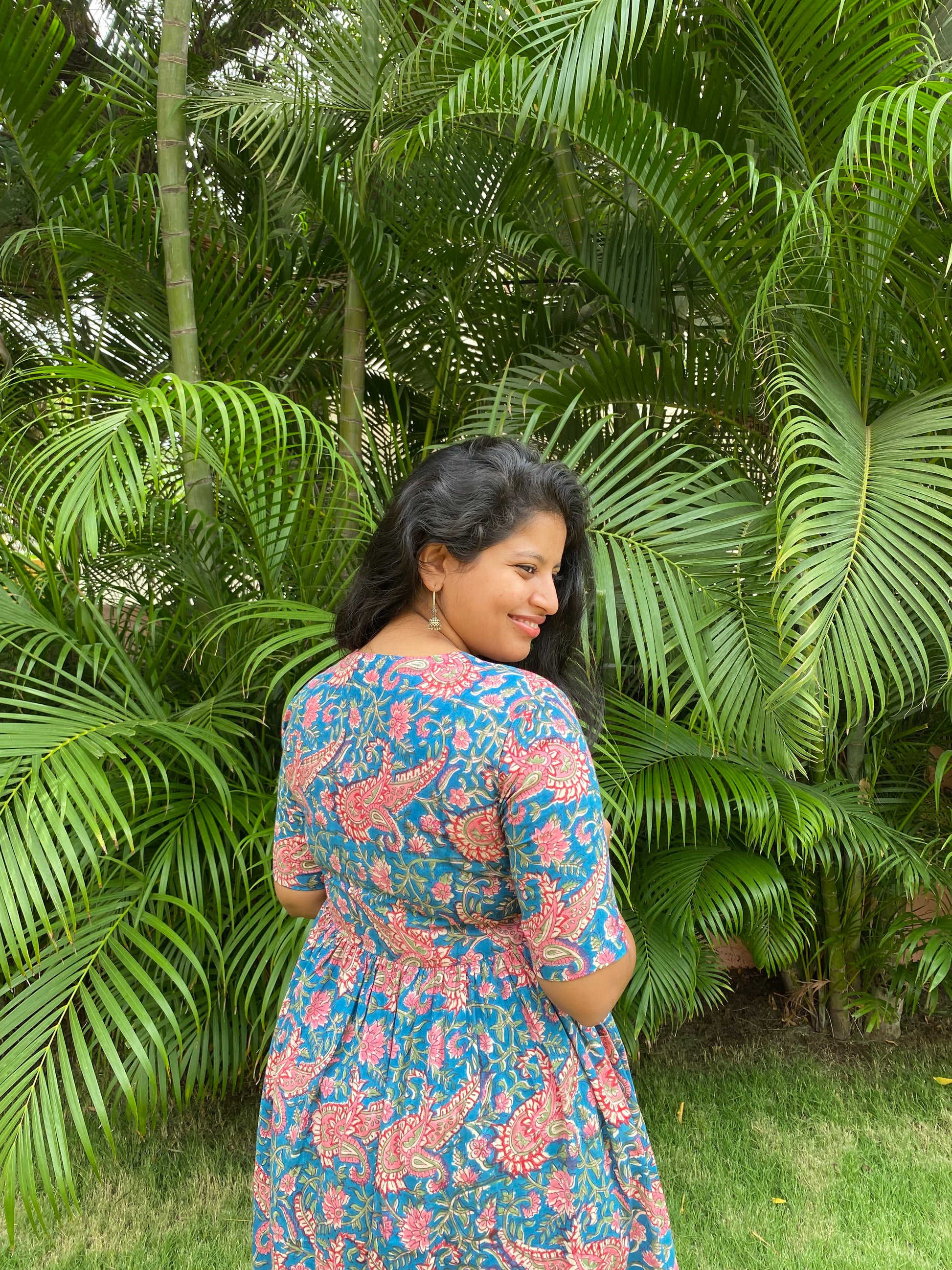 Stay comfy and stylish in our pure cotton ”Mathappu” pleated kurta set! Featuring a playful paisley print, a chic design, and a refreshing green hue, it’s perfect for a relaxed, yet vibrant look.