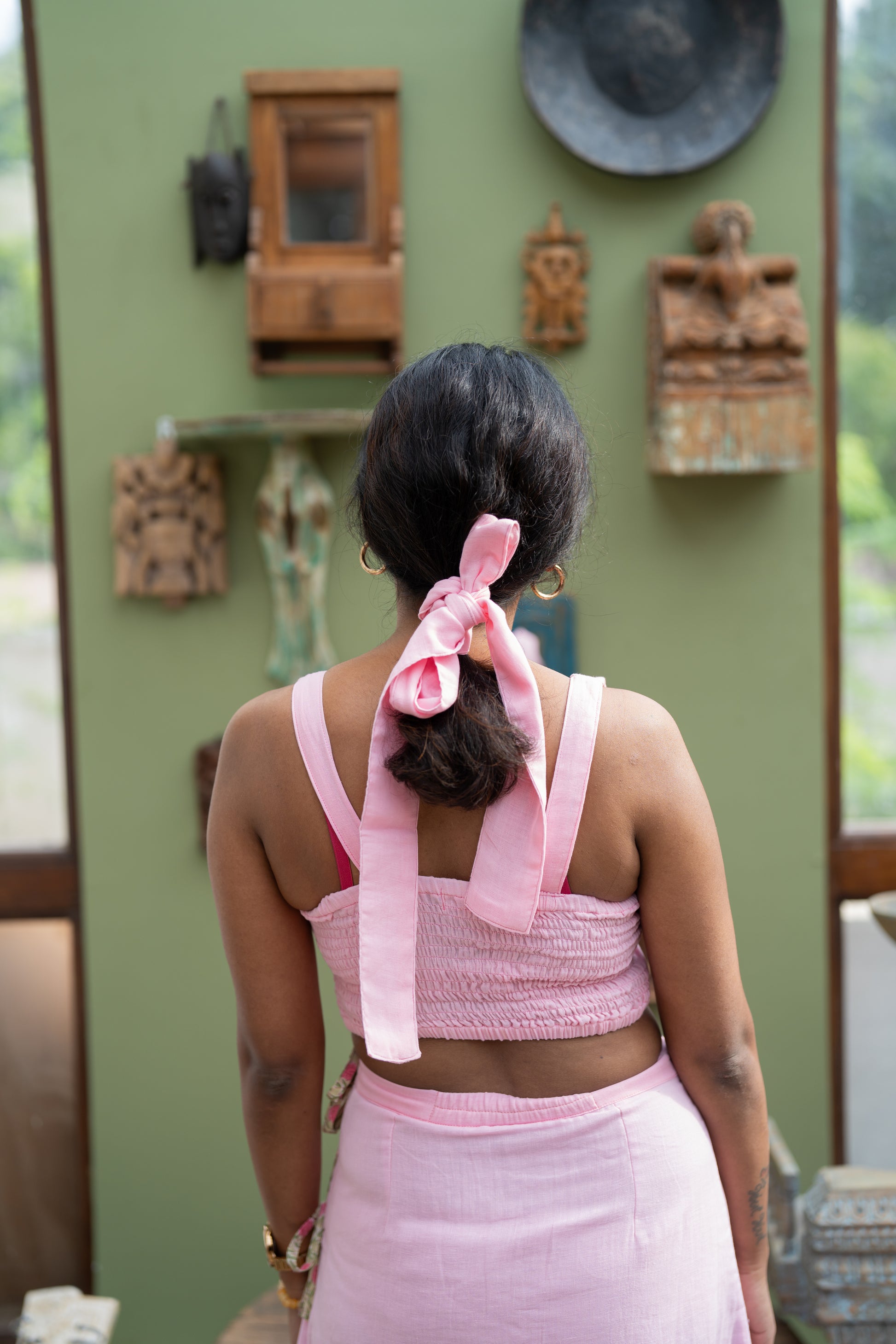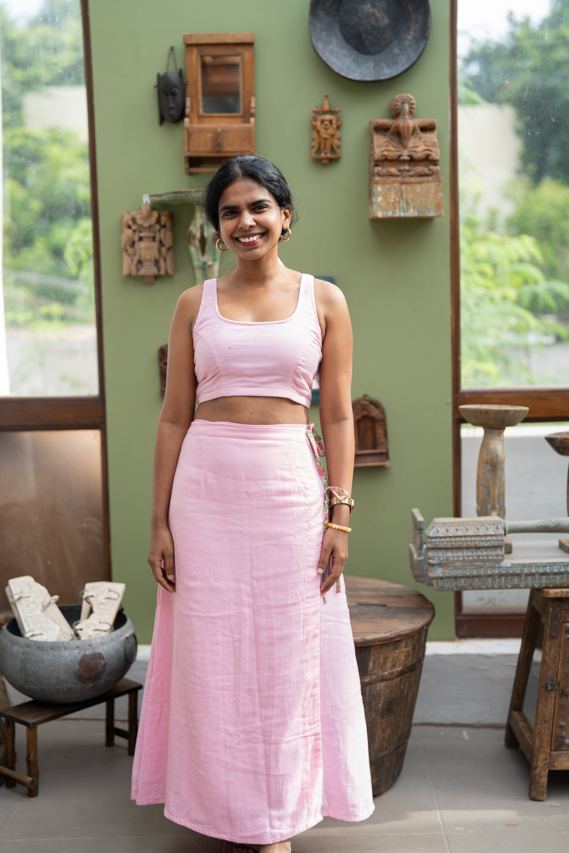 This light pink co-ord set from our Khatta Meetha collection is your outfit version of that first crunchy bite of golgappa bliss. The skirt features a flirty faux wrap style that gives all the drama without the hassle, while the crop top has an elasticated back that hugs you just right. It’s breezy, playful, and packed with flavour — just like your fave street-side snack.