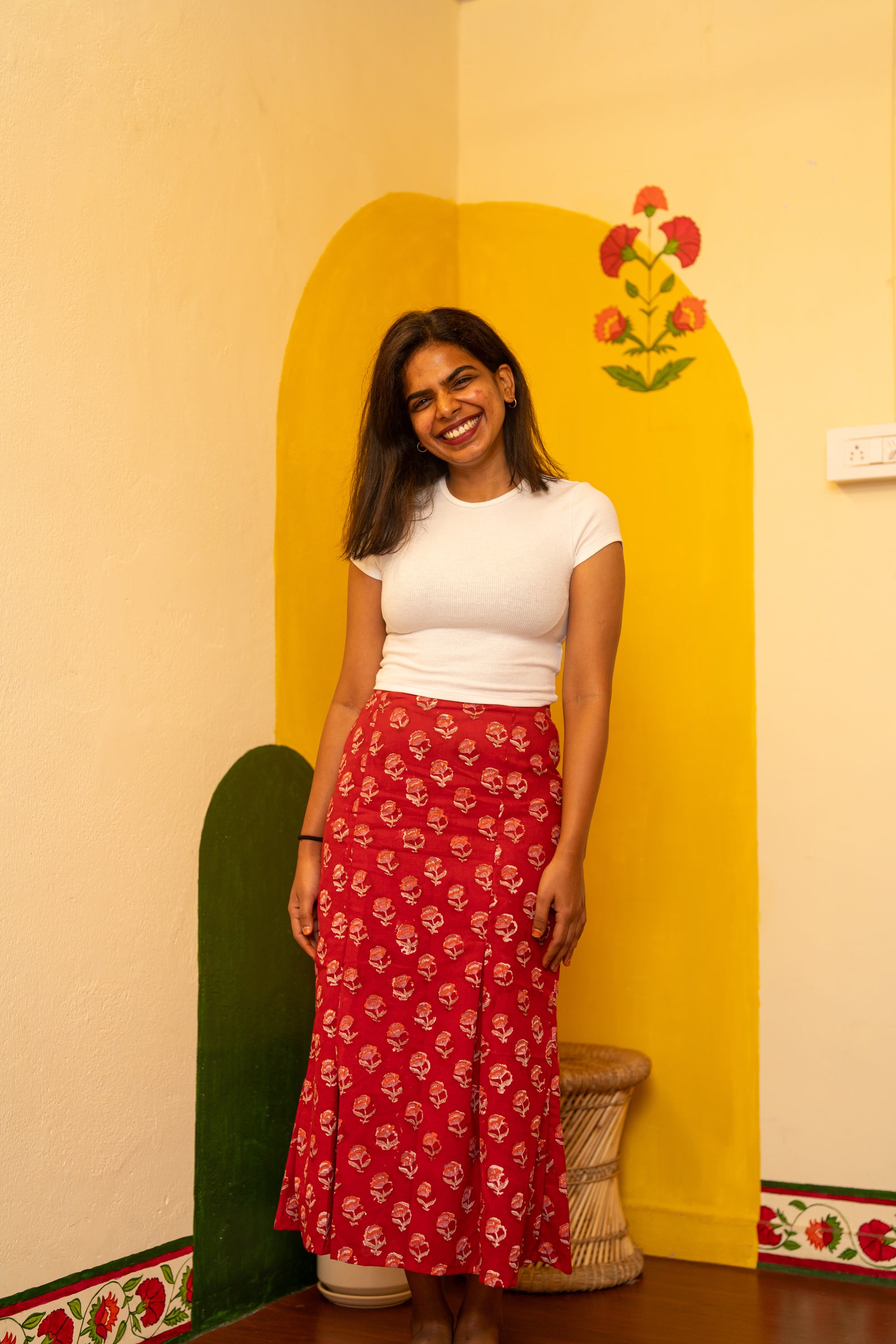 Meet Raga—a striking red midi mermaid skirt that brings all the drama, elegance, and main character energy! ❤️🔥 Inspired by Raghavi, our founder (who claims she’s old and sad but is actually a total powerhouse), this skirt is made for making waves. Bold, fierce, and impossible to ignore—just like Raga, it’s here to remind you that confidence is always in style!