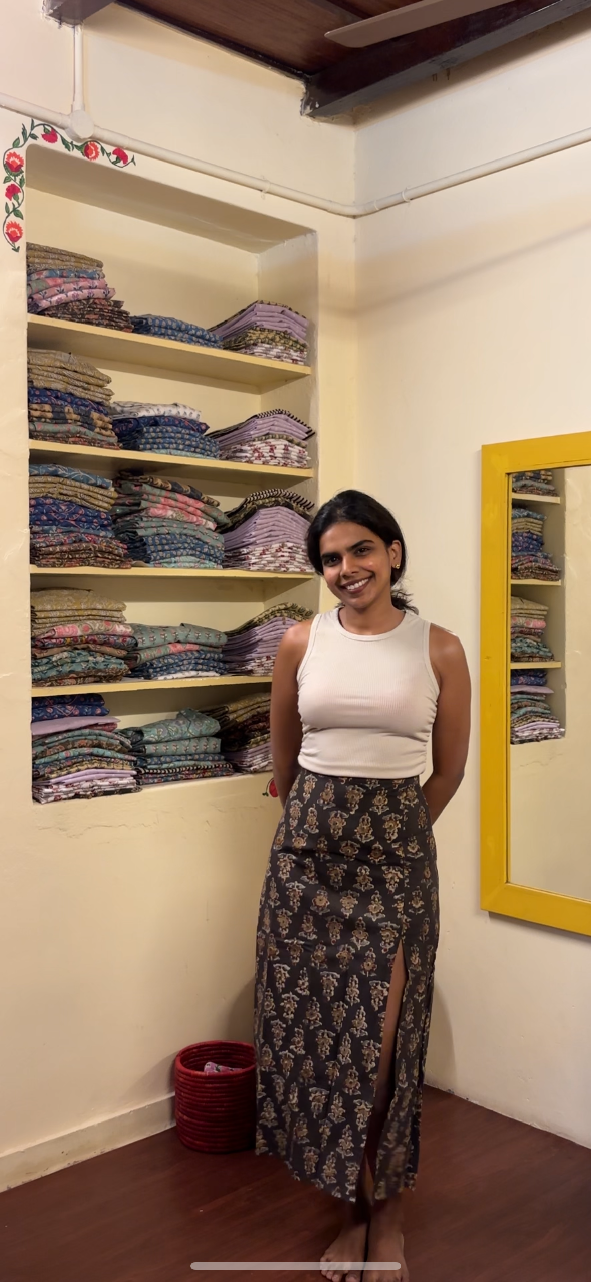 Meet Shreya—a dark-toned slit skirt that’s as bold, powerful, and chic as the bestie it’s named after! 🌑✨ Inspired by Shreya, our founder’s entrepreneurial bestie, this skirt is all about making a statement with confidence and style. Whether you're hustling through your day or stepping into a night of fun, Shreya is your go-to for fierce, fashion-forward vibes!