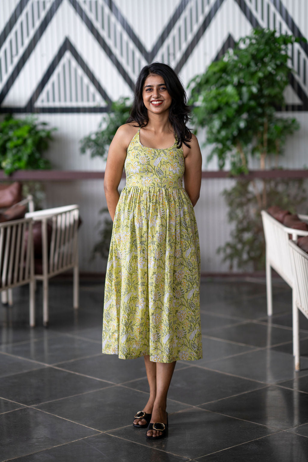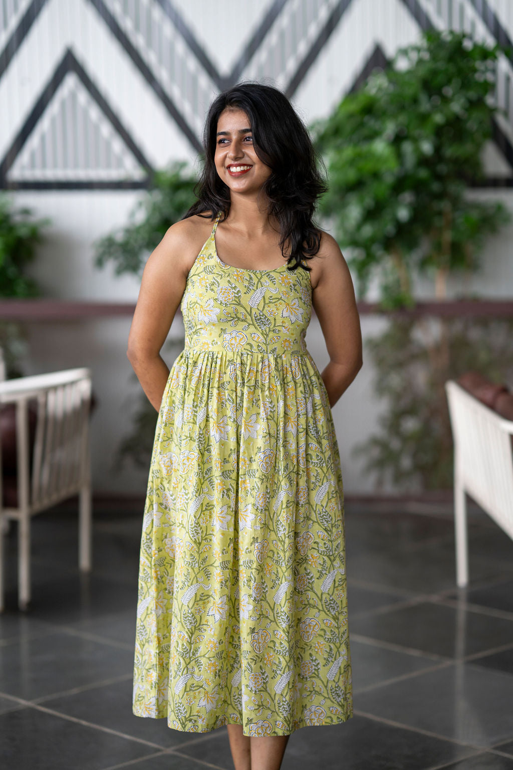 Meet Sip & Spill — the pastel-green, handblock-printed back-tie beauty that hugs you in all the right places and makes you look so snatched, even your iced latte will spill in awe. And the silhouette? Cinched, sculpted, and designed to create those wow-worthy curves that make strangers wonder what your morning routine is.